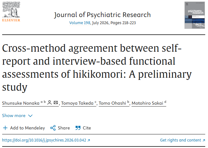 論文が公開されました 2026年04月10日 最終更新日時 : 2026年04月10日 野中 Journal of Psychiatric Researchに論文が公開されました。 Redirecting http://doi.org